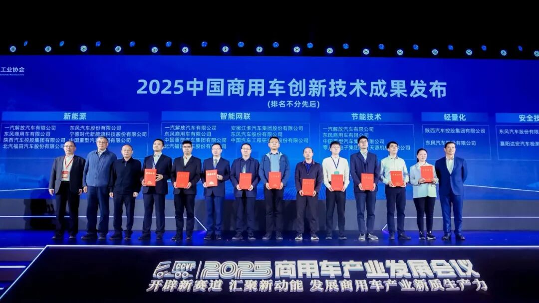 ▲大会发布了2025中国商用车创新技术成果,东风商用车在新能源、智能网联、节能技术领域成果位列其中