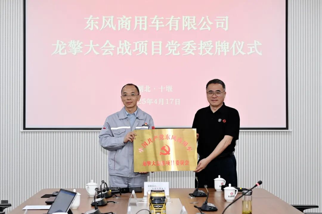 4月17日,东风商用车有限公司举行龙擎大会战项目党委(临时党委)成立仪式,东风汽车集团股份有限公司商用车事业部总经理、东风商用车总经理张小帆为项目党委授牌,东风商用车党委副书记、副总经理刘利成主持仪式并任项目党委书记,东风商用车纪委书记曾苗宣读项目党委成立文件。
