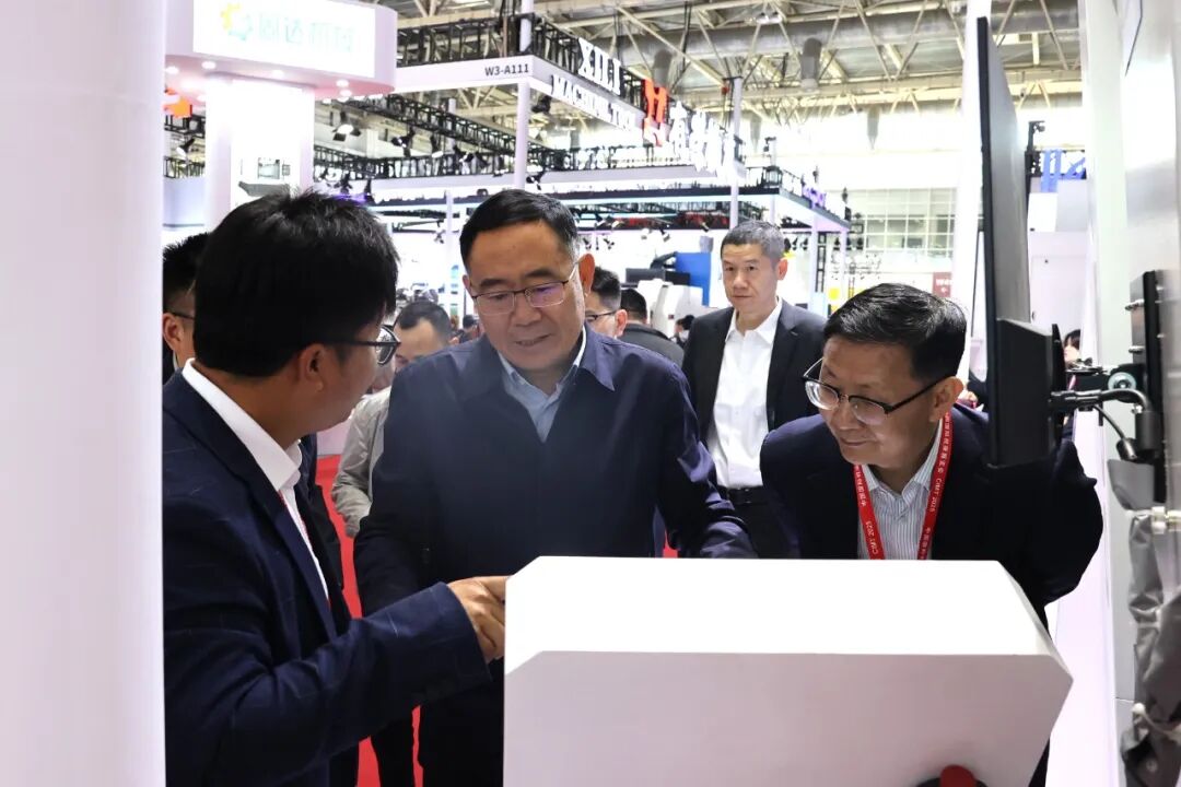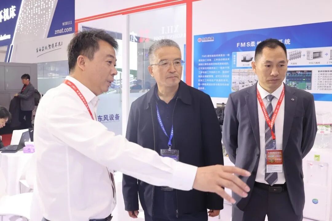 ▋ 东风科技(东风零部件)党委书记、东风科技董事长蔡士龙(左二)到现场参观,查看东风设备机床、工业服务、数字科技业务转型新成果