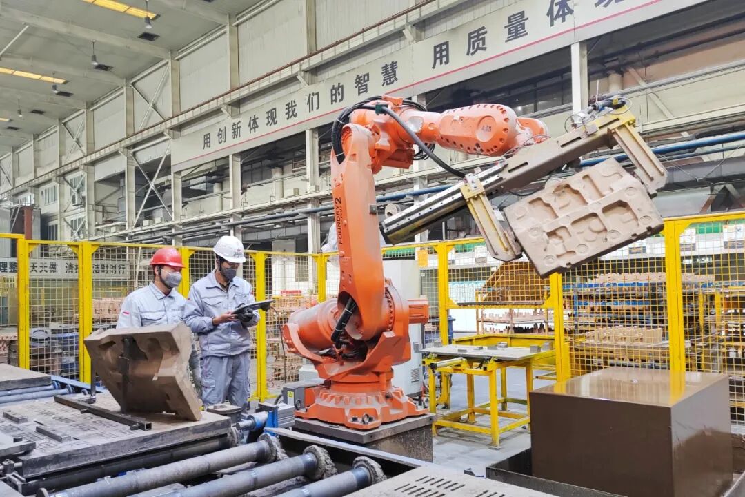 在东风商用车十堰铸造分公司砂芯车间缸体制芯中心,机械手稳稳抓取缸盖,从容完成涂料作业。M9T缸体是十堰铸造分公司重点开发的新产品,随着产量逐步增长,这一工序成为了制约产量提升的瓶颈。