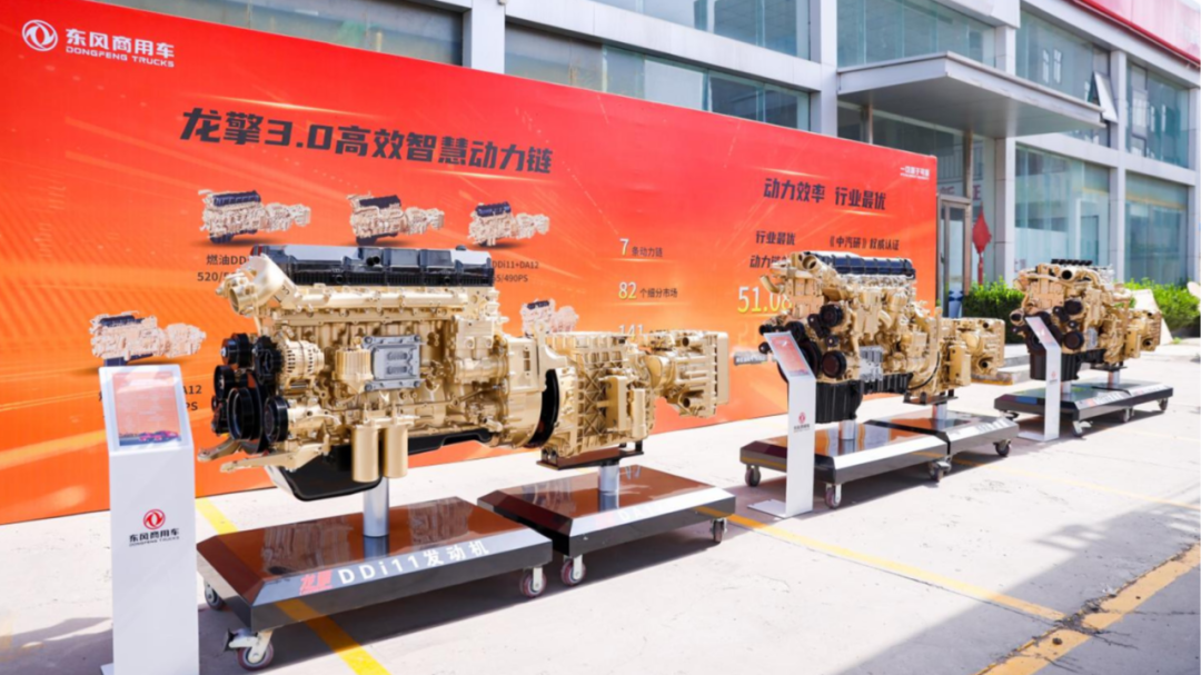 活动当天,6辆搭载龙擎DA12变速箱的东风天龙系列车型整齐列队、蓄势待发,3组龙擎3.0动力总成展机依次排开,全方位展示东风商用车的创新实力与精工品质。