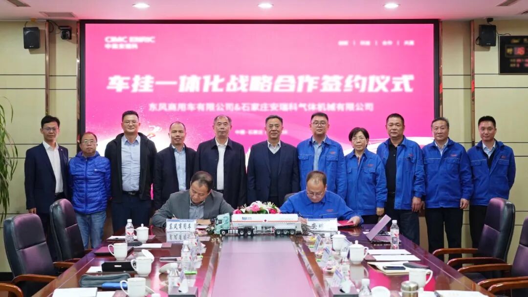 10月10日,东风商用车有限公司与石家庄安瑞科气体机械有限公司(以下简称“石家庄安瑞科”)举行战略合作签约仪式。双方明确将强强联合、优势互补,共同打造领先的车挂一体化解决方案,推动行业标准提升,促进液化天然气(LNG)、氢能、氨能等清洁能源的普及与应用,并为商用车领域节能减排作出贡献。