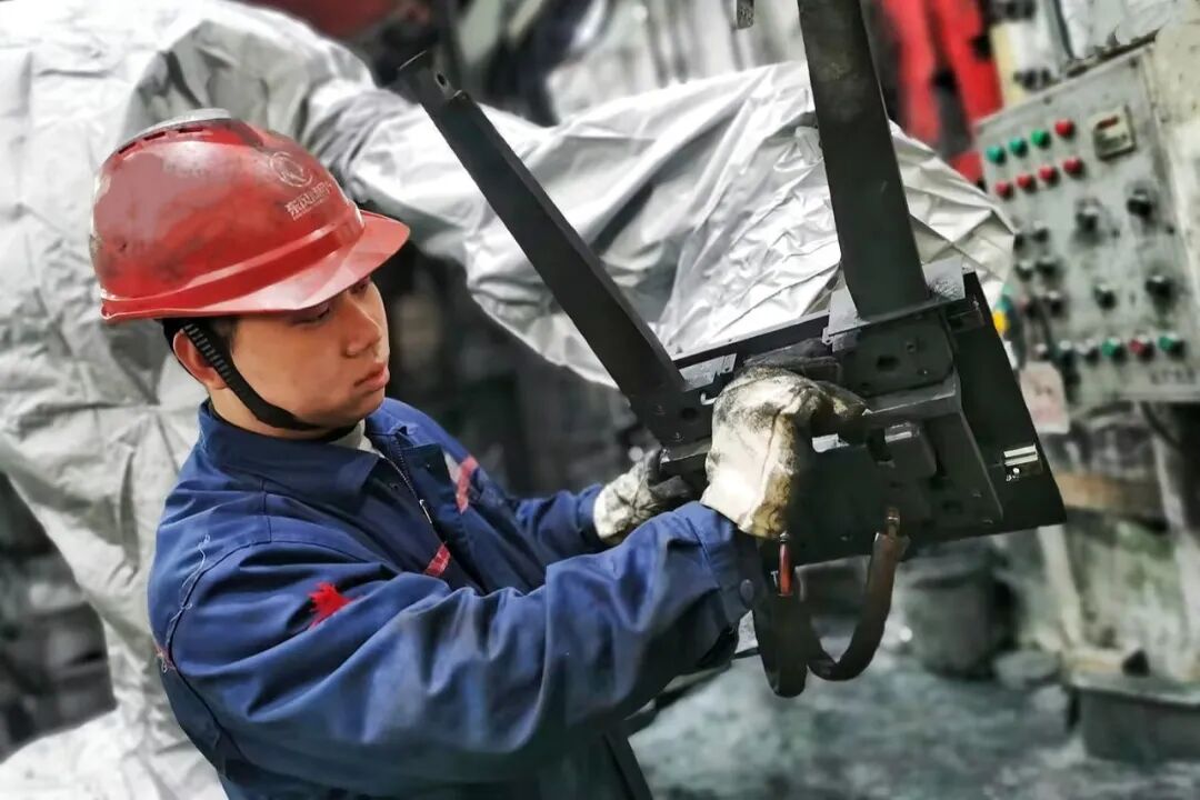 锻一作业部的8#31.5MN新制伺服传送带改善项目正是他们的成果之一。这台设备需要频繁切换制品,为匹配不同产品的生产需求,要反复调整传送带,成为制约效率提升的瓶颈。对此,东风锻造推动跨部门协同,装备部与车间配合,由保全班联合技术骨干组成攻关小组,自主设计制作了人机两用伺服传送带,既能适配机器人自动化生产的高精度要求,又能配合人工操作灵活调整,从根本上提升了传输装置的自动化水平与适应性。
