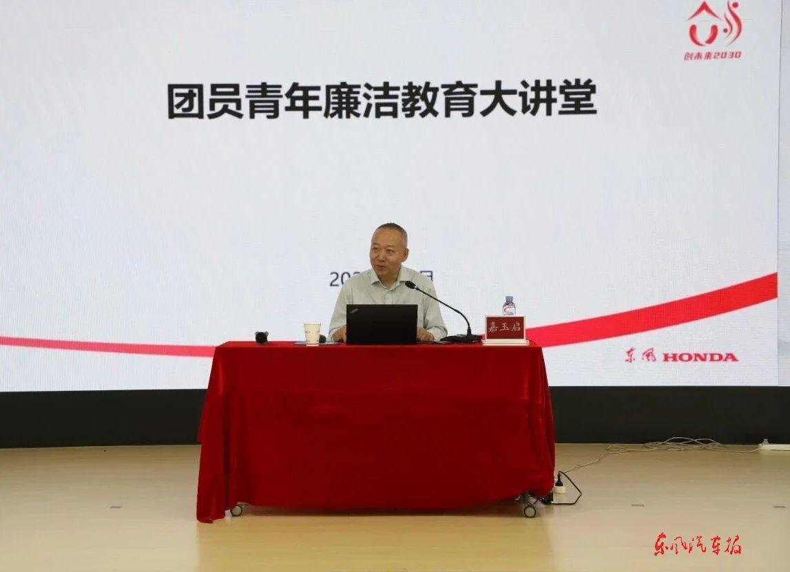 中央纪委国家监委驻东风公司纪检监察组嘉玉启应邀作题《为奋斗者说》的专题授课。现场设置了有奖问答环节并针对答对题目的青年现场颁发廉洁文创产品。东风本田纪委书记韩永民表示,廉洁是立身之本、成事之基,要清醒认识青年员工面临的廉洁风险挑战,系紧“风纪扣”、拧紧“安全阀”,筑牢青年员工廉洁自律防线,引导青年员工做政治上的“明白人”,做行为上的“规矩人”,做生活上的“干净人”,做事业上的“奋斗人”。