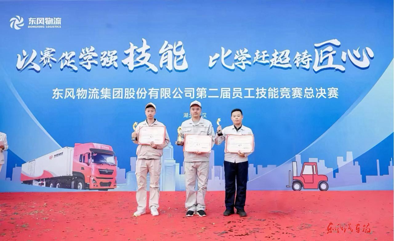 冯卫卫(中)蝉联东风物流第二届员工技能竞赛叉车项目冠军