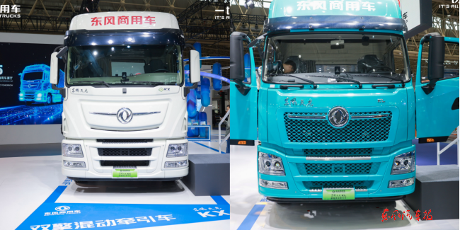 两款混动车型,力求节能与高效的平衡。东风天龙KX双擎混动牵引车,搭载东风龙擎燃气机+绿控电机智慧双擎动力系统,能够根据不同路况选择最优工作模式。纯电起步,平稳有力又省气,混驱爬坡,动力更强劲。在山区复杂路况下综合节气率达10%,显著降低运营成本,提升经济性。
