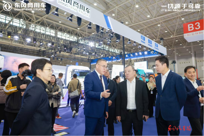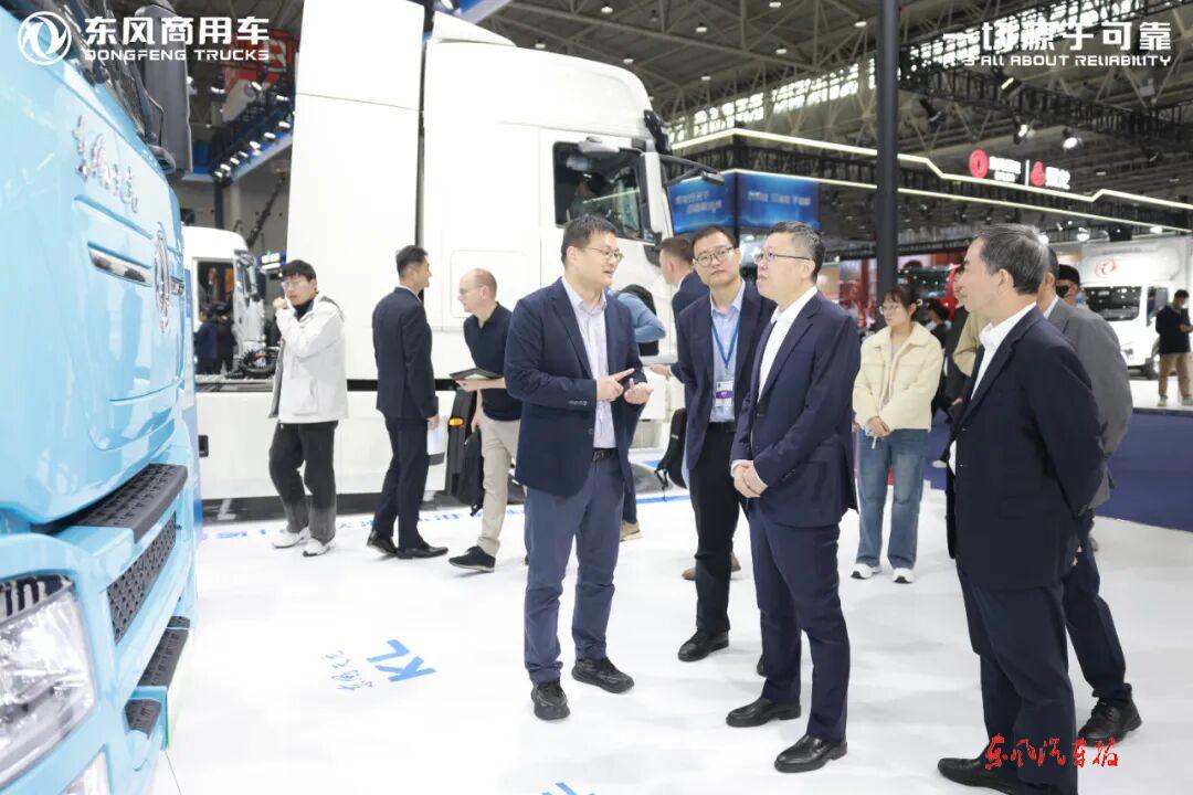▲东风汽车、商用车事业部、东风商用车领导,以及中国国际贸易促进委员会、湖北省汽车行业协会、中汽中心等单位领导参观展台,全面感受东风商用车以可靠技术和创新方案为现代化物流书写的“绿”“智”答卷