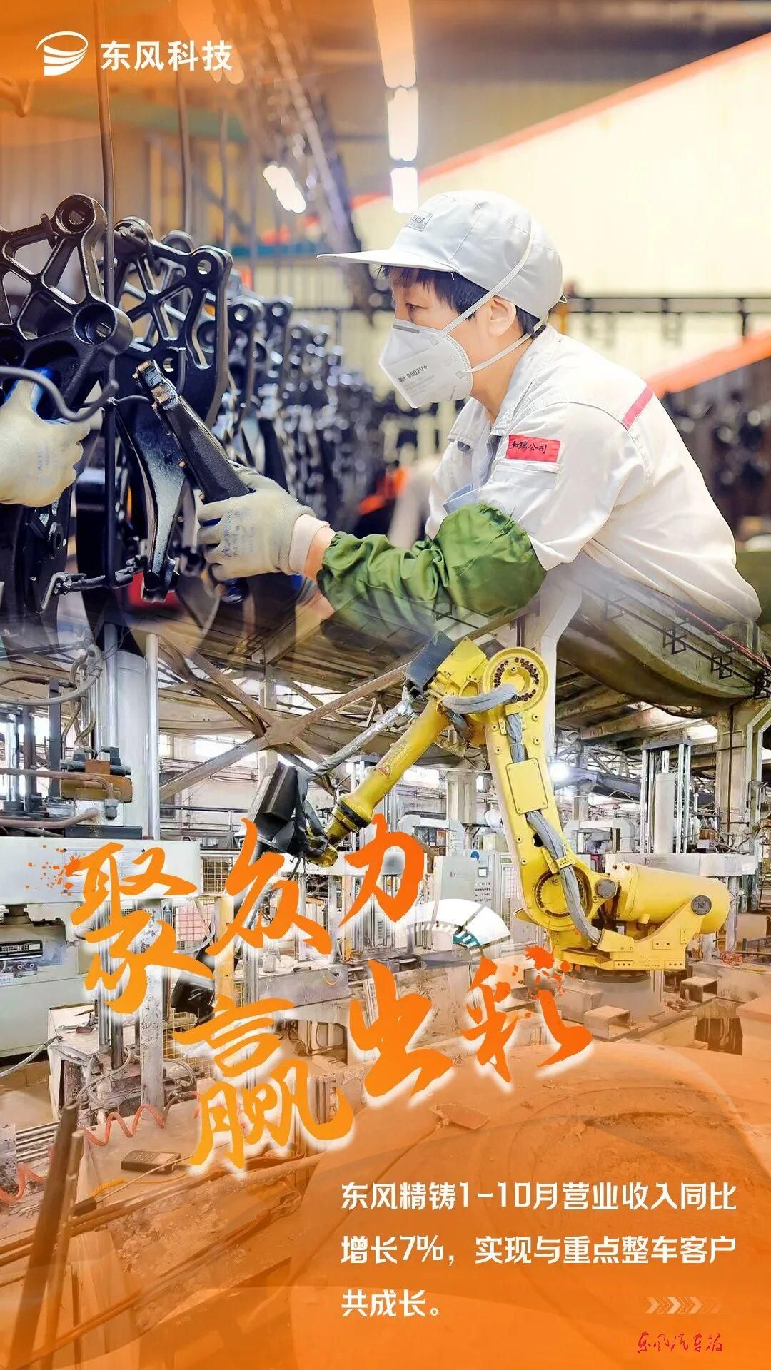 1-10月,东风精密铸造有限公司营业收入同比增长7%,实现与长城、北汽越野车、宇通等重点客户共成长。尤其在摩托车行业,打造基准座总成、后摇臂总成、后平叉等多条特色产品线,为客户带来增值服务的同时,实现精铸外观件的升级,截至10月,东风精铸在摩托车领域收入同比增长15%,年内有望突破8000万元大关。