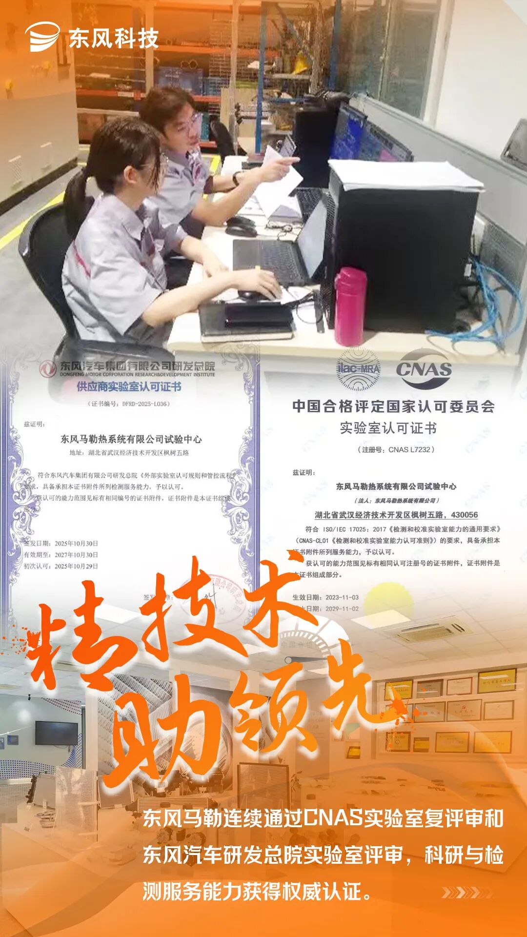 近日,东风马勒热系统有限公司试验中心历经严格的现场评审与技术核验,连续通过CNAS实验室复评审和东风汽车研发总院实验室评审。两项审核的成功通过,标志着东风马勒在检测能力和技术规范等核心维度达到行业领先标准,科研与检测服务能力获得权威认证。