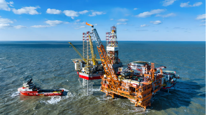 这是2025年2月8日拍摄的渤中26-6油田一期开发项目海上作业平台(无人机照片)。新华社发(杜鹏辉 摄)