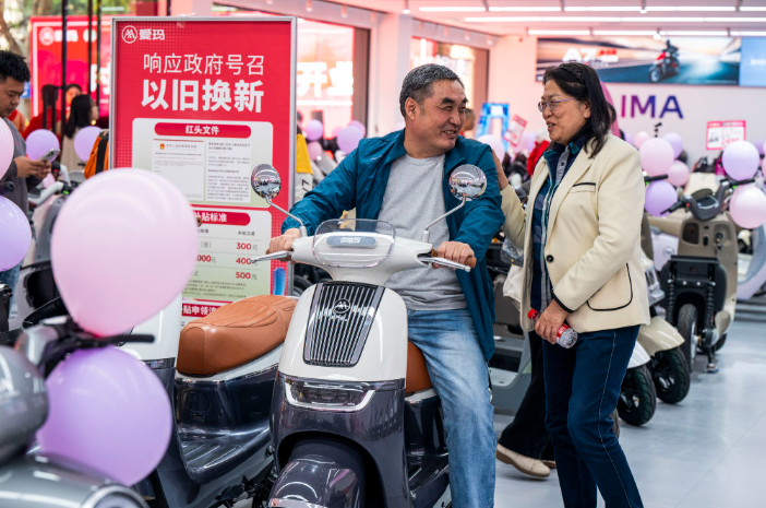 2025年3月21日,消费者在广西梧州市万秀区一家电动自行车销售门店选购电动自行车。新华社发(何华文 摄)