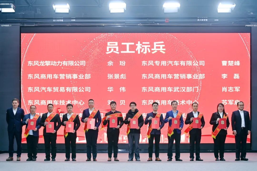 东风汽车集团股份有限公司商用车事业部总经理、党委书记、东风商用车董事长张小帆出席会议。公司总经理刘利成,党委书记、副总经理郑华,副总经理刘振声,纪委书记曾苗,副总经理吴怀主、黄政、白维之、杨若青,总经理助理福兰克、方勇、张大,总经理助理兼营销事业部总经理刘翼,以及公司全体高管、长青计划挂职干部、职代会职工代表、受表彰单位代表及个人参加会议。