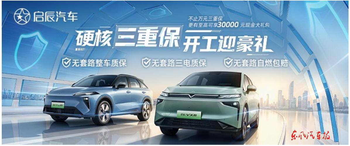 【东风汽车报广州讯】 3月1日,启辰汽车推出“硬核三重保”售后保障政策,主要针对旗下启辰VX6与启辰大V DD-i虎鲸两款车型。政策以“自燃包赔不限首任车主”为核心亮点,同时提供限时最高3万元购车现金优惠。
