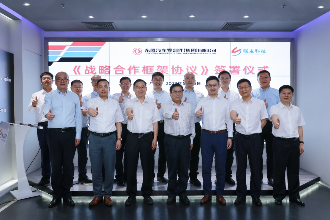 东风汽车有限公司副总裁、东风零部件集团董事长、总经理陈兴林,东风零部件集团党委书记蔡士龙、副总经理罗耀华,深圳市东风南方实业集团有限公司副总经理陈浩村,联友科技总经理胡永力等出席签约仪式并讲话,联友科技党总支书记兼常务副总经理夏鹏涛主持签约仪式。