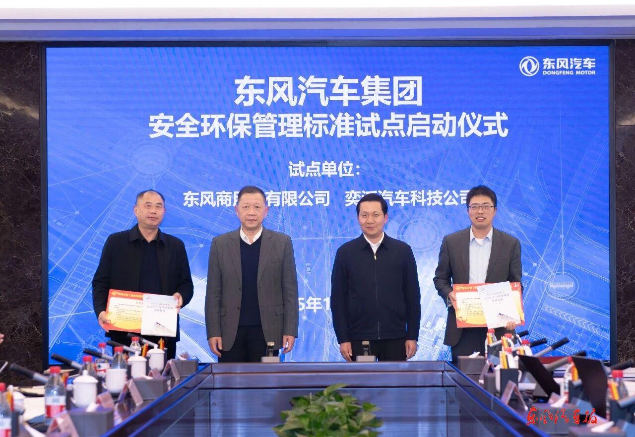 会议举行《东风安全生产与环保低碳管理标准》试点启动仪式。杨青、冯长军为东风商用车、奕派科技颁发《东风安全环保管理标准》试点任务战表。公司安委会办公室、公司工会分别汇报安全生产与环保低碳工作、健康食堂推进工作。