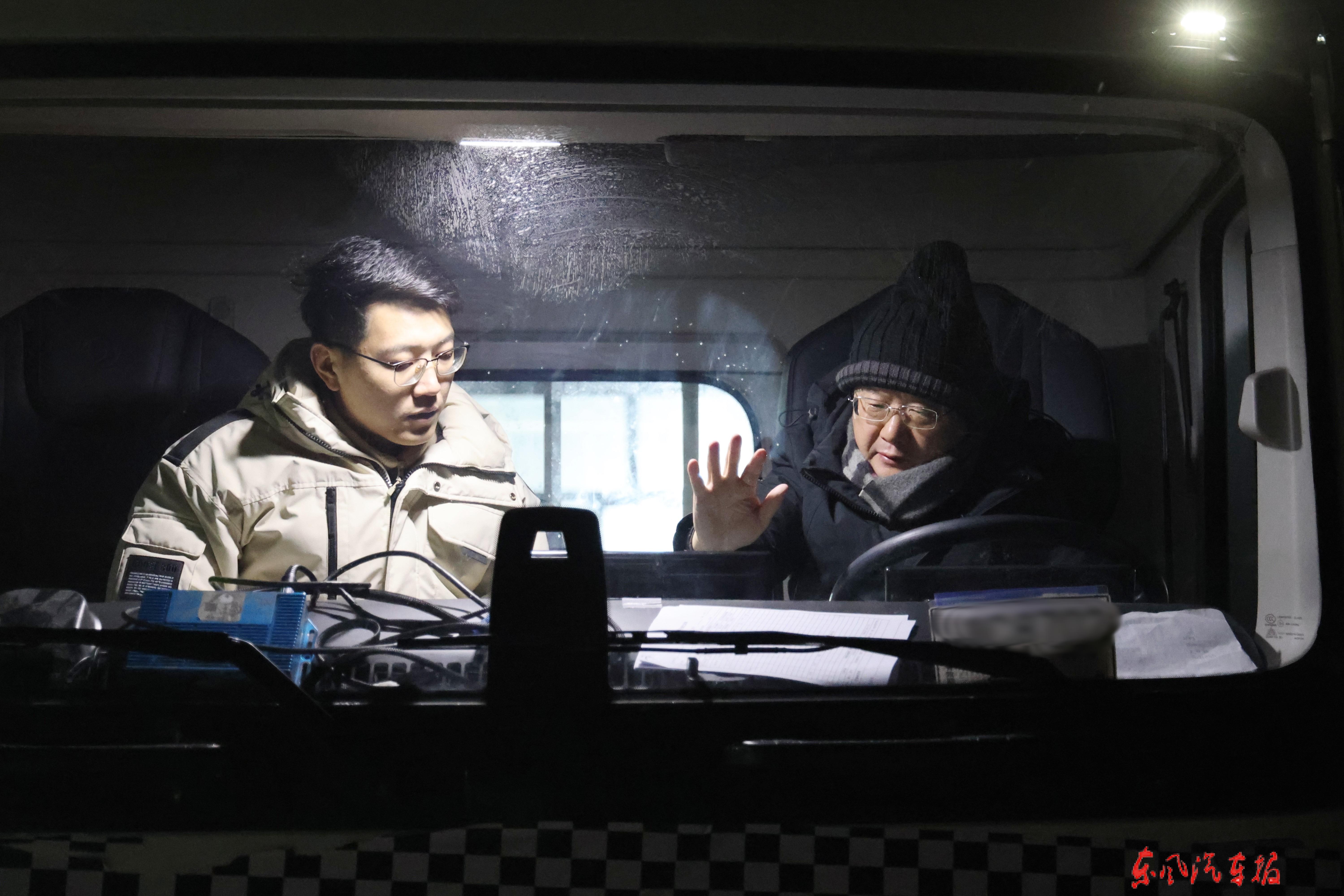 ▲凌晨4时30分,-27℃,试验样车冷启动测试环节,所有车辆成功启动,展现出东风商用车的硬核实力