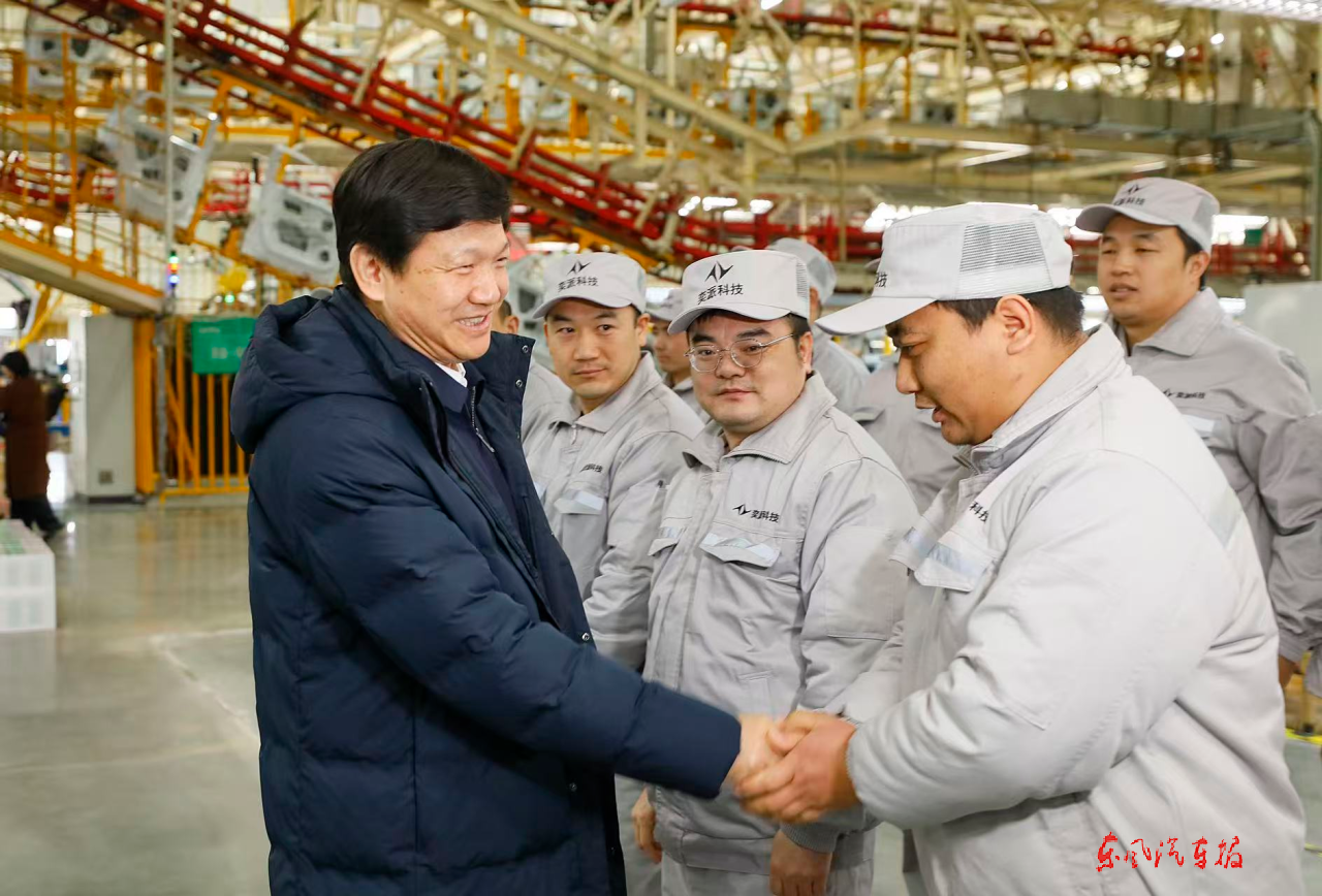 【东风汽车报武汉讯】 2月2日,中华全国总工会党组成员、经费审查委员会主任蔡安辉一行来东风开展送温暖慰问。在奕派科技武汉一厂,他看望慰问辛勤工作在一线的劳动模范、先进班组和全体职工,并致以诚挚问候和新春祝福。湖北省人大常委会副主任、省总工会主席刘雪荣参加活动,东风汽车党委副书记、工会主席刘艳红陪同慰问。