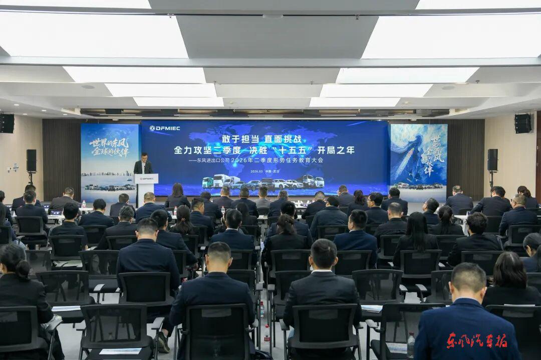 邱晓军作形势目标任务宣讲并表示,东风进出口公司一季度圆满完成季度目标任务。二季度要密切关注国际政治经济环境变化及各区域市场需求趋势,及时调整优化区域市场策略;要树立和践行正确政绩观,强化合规经营与合法运营意识,有效防控经营风险,牢牢守住量利双赢的底线;要聚焦重点、狠抓落实,全力推进营销模式转型与队伍建设,统筹“大而强、小而美”协调发展,推动渠道下沉与网点布局,强化供应链金融工具应用,推进海外仓建设与供应链出海,加快海外子公司建设与属地化人才培育。