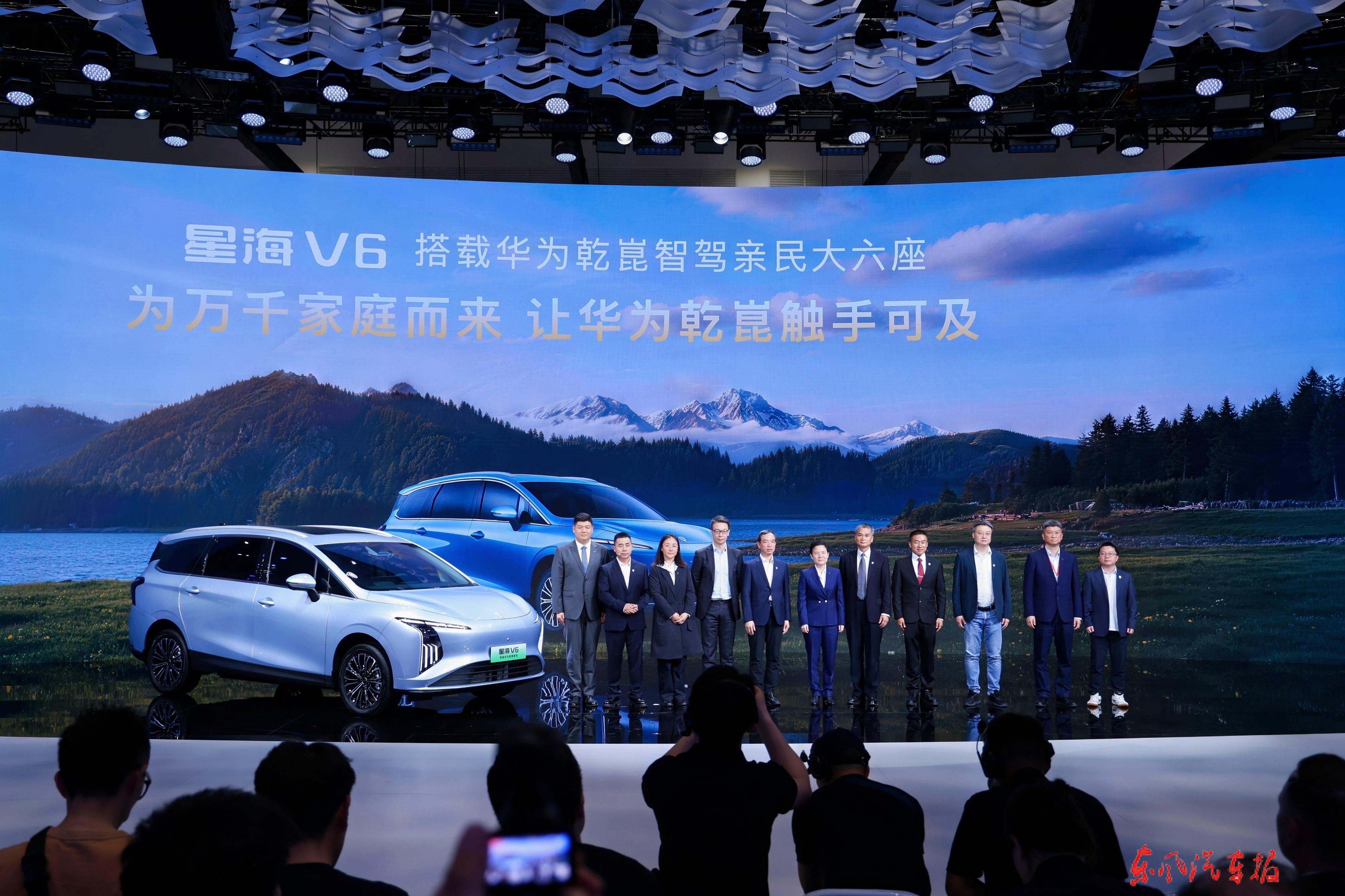 【东风汽车报讯】4月24日,2026年第十九届北京国际汽车展览会现场,东风风行旗下全新纯电大六座车型——星海V6正式亮相。作为东风风行与华为深度协同开发的首款车型,星海V6搭载华为乾崑智驾,以“为家而来”为核心开发理念,专为多人口家庭用户打造,旨在让中国万千大家庭拥有更智慧、更从容、更体面的出行新选择。东风汽车党委副书记、工会主席刘艳红出席发布会。