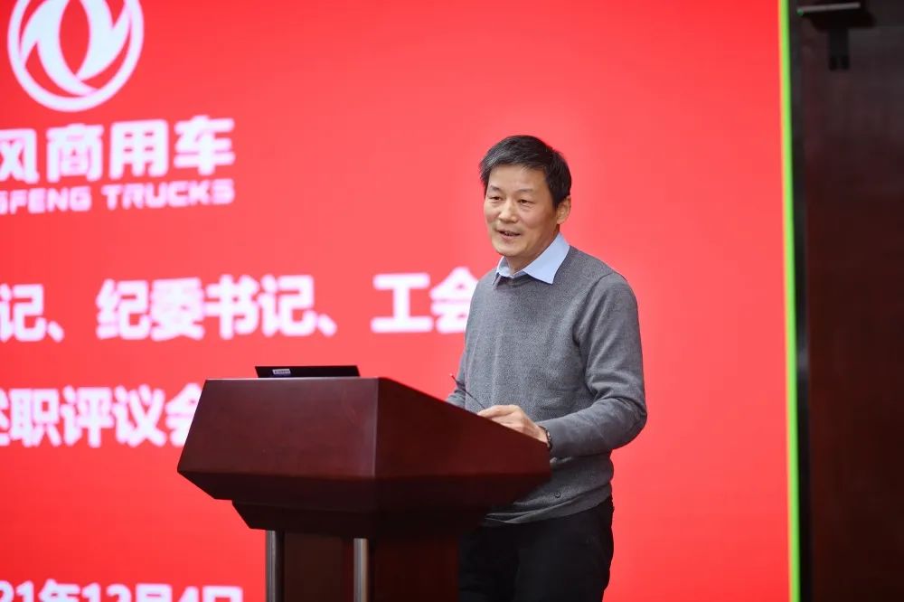12月4日,东风商用车有限公司召开2021年度党委书记、纪委书记、工会主席述职评议工作会。东风公司总经理助理、东风商用车有限公司董事长、党委书记周先鹏强调,党委书记、纪委书记、工会主席是工厂、子公司和部门的掌舵者,责任重大,务必躬身入局、以上率下,带头转观念、转作风、强变革、强管理、强人才,推动“党委促落实,纪委督落实,群团助落实”落到实处,切实增强目标必达的使命感、迎难而上的斗志、干事创业的激情,带领团队,通过以客户为中心的品牌向上战略,乘风破浪,恢复上升态势,重回领跑阵营。