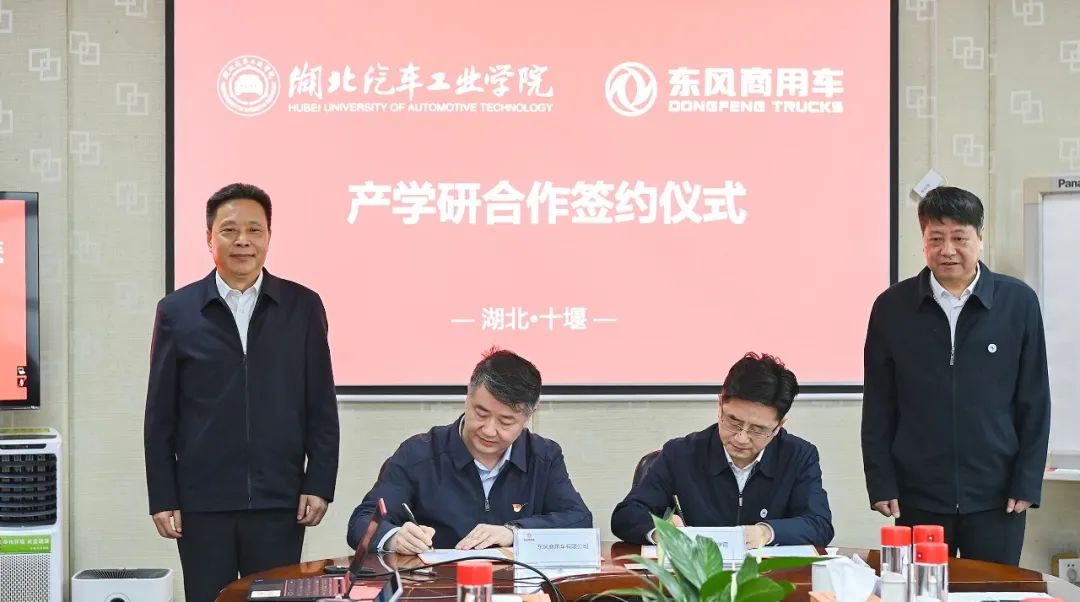 4月22日,东风商用车有限公司与湖北汽车工业学院“产学研合作协议”签约仪式在十堰举行。未来,双方将依托汽车产业,在科研创新、人才培养、平台共建、成果转化等方面深度合作,实现校企共赢,助推东风商用车产业技术升级和转型升级。